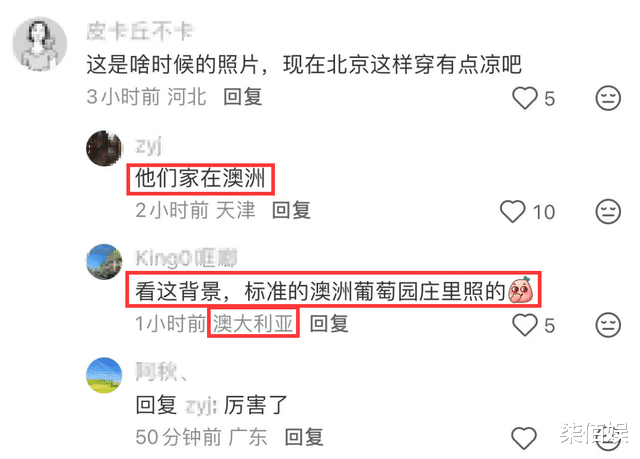 郭德纲一家穿的并不厚,网友猜测他们一家当下应该并不在北京。很快就有澳大利亚网友表示,郭德纲一家三口大合照是在澳洲葡萄庄园里照的。
