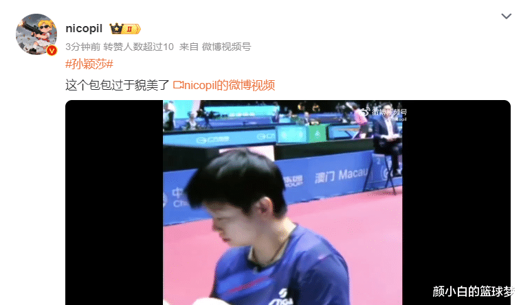 很多人都晒出直播时孙颖莎场边喝水、擦汗的瞬间,都觉得孙颖莎这一幕太可爱了。
