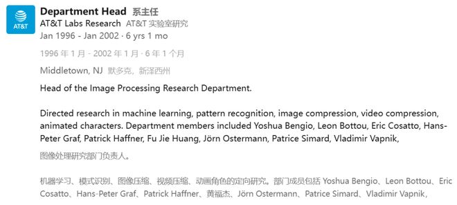 LeCun留在了AT&T,负责一个专注于图像处理研究的实验室小组。