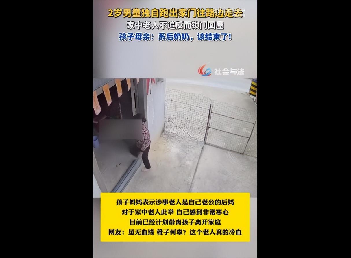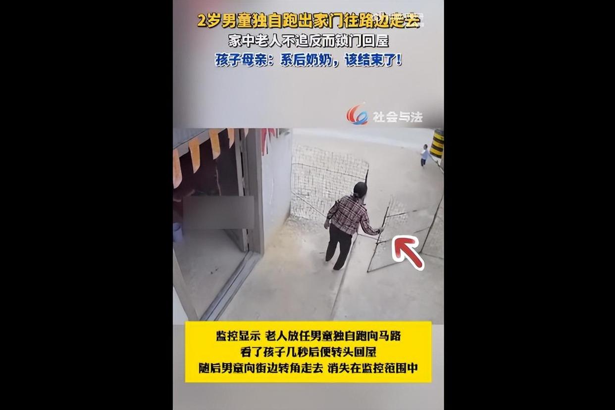 近日,广西柳州。一名年仅2岁的男童独自跑出家门,向马路边走去,家中老人看到后,不仅不追孩子,反而锁了大门回屋。