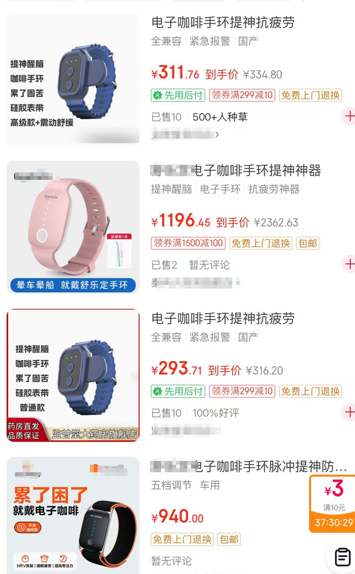 “戴上一只手环,效果竟能抵过几十杯咖啡?”最近,一款名为“电子咖啡手环”的产品在电商平台悄然走红。它主打“物理提神、无成瘾性、不影响睡眠”,同时声称能有效缓解疲劳、提升专注力,吸引了不少上班族和学生群体的关注。