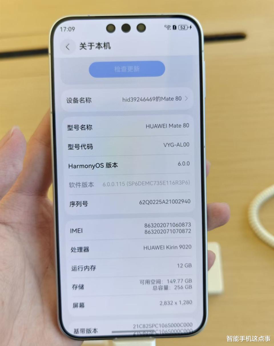 其次,搭载的麒麟9030处理器确实是分为了不同的版本,并且笔者发现华为Mate80标准版采用的是麒麟9020处理器。