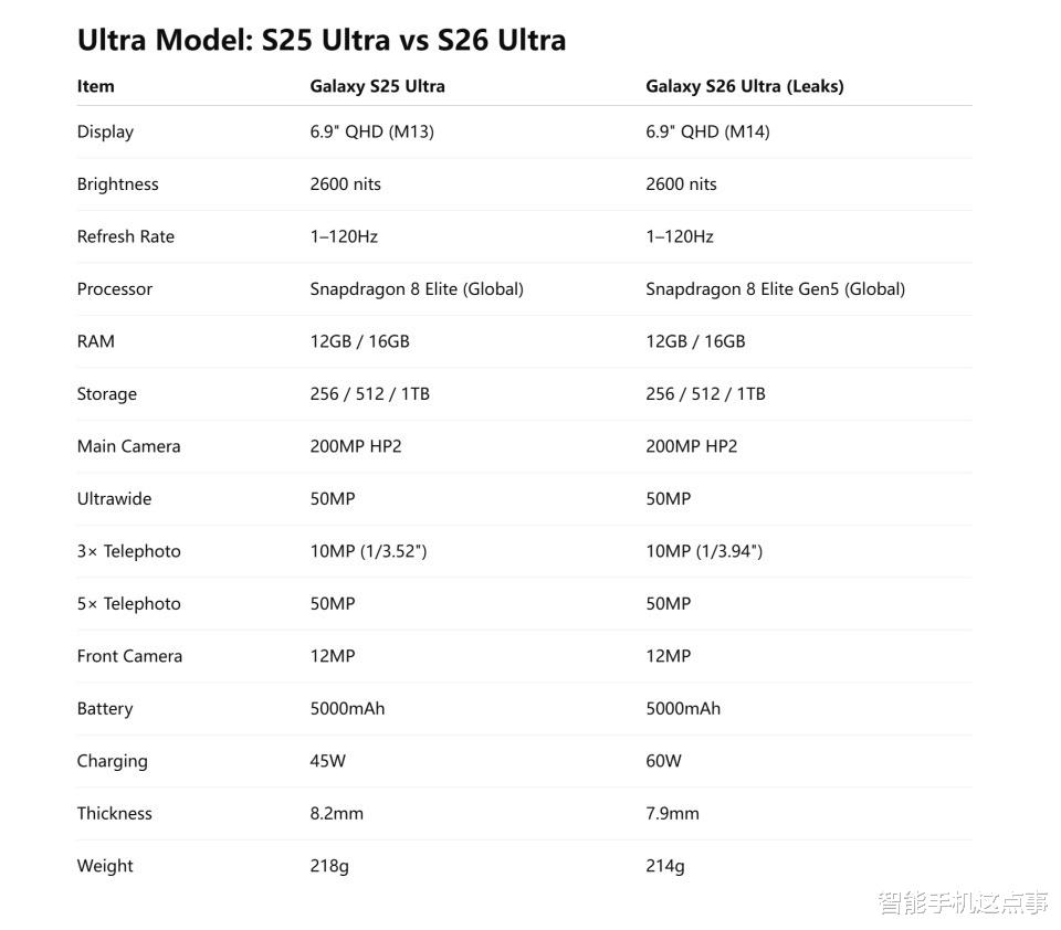 这些变化虽看似不起眼,却可能对用户体验产生直接影响,为了更详细了解新机的变化,笔者依据泄露的数据,客观剖析S26系列在屏幕、处理器、电池、相机等方面的具体提升。