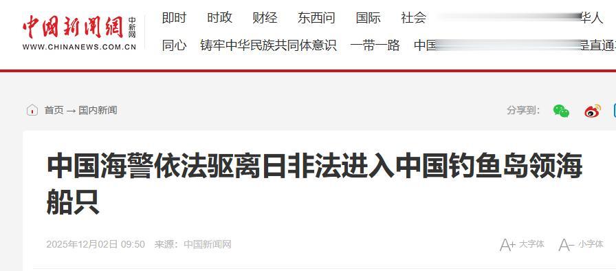 信息来源:中国海警依法驱离日非法进入中国钓鱼岛领海船只 2025年12月02日 09:50 来源:中国新闻网
