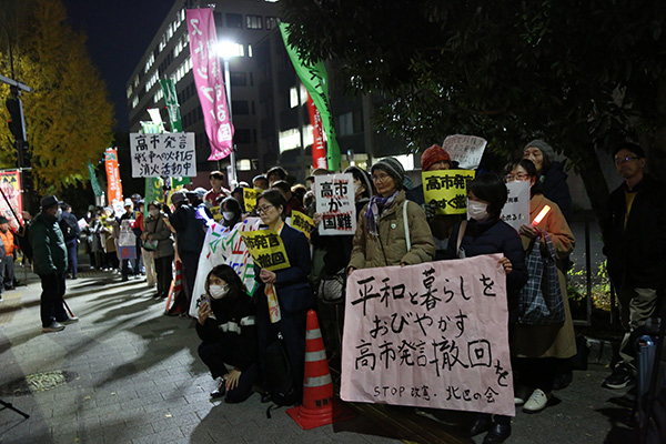 12月4日晚,数百名日本民众在日本首相官邸前再度举行集会,要求高市早苗撤回涉台错误表态。ICPhoto
