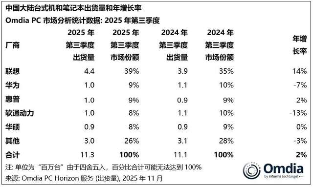 近日,有机构发布了2025年三季度,中国PC市场销量数据。