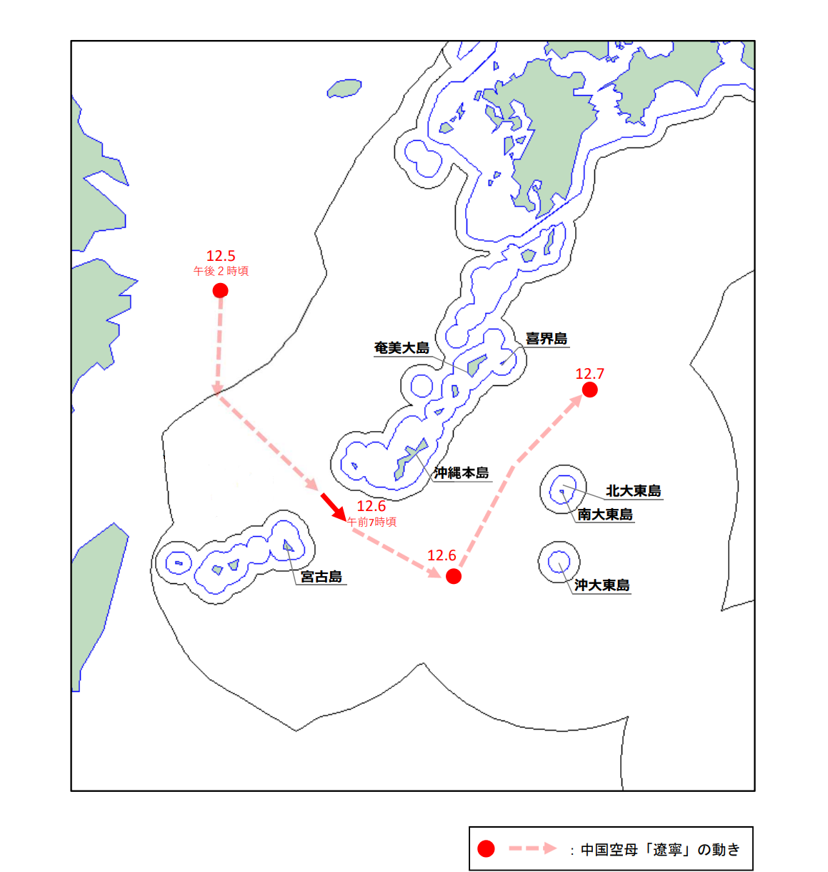 [文/观察者网专栏作者王世纯]根据日本防卫省发布消息,12月7号,中国海军辽宁舰航母战斗群沿琉球群岛以东海域北上,抵达喜界岛以东约190公里处。相较于前一天位置,辽宁舰北上约600公里。这是辽宁舰近年来首次通过宫古海峡以后北上航行。