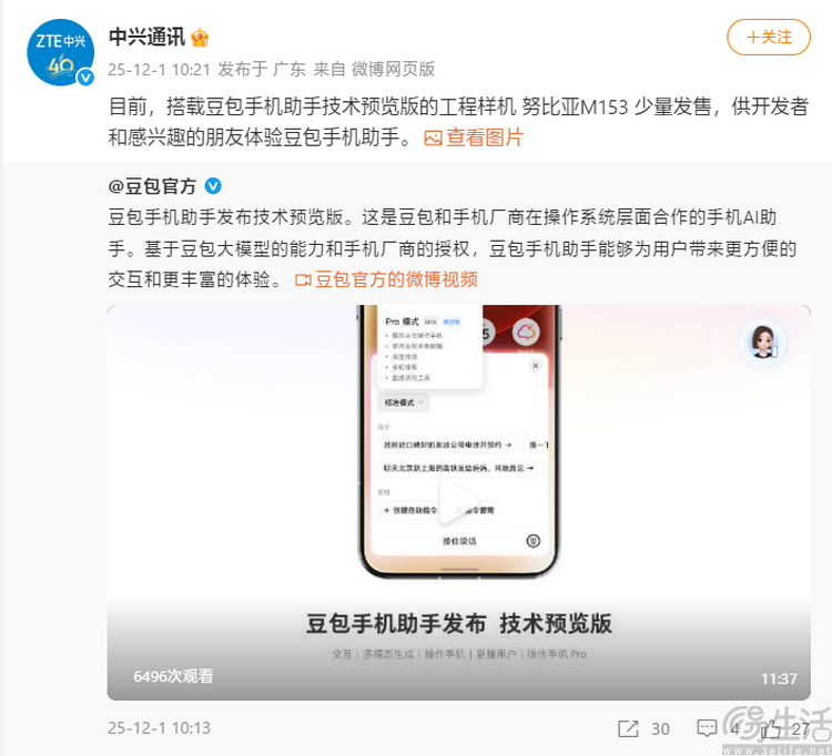 根据公开报道显示,这款机型是字节跳动与中兴合作的产物,主要目的是用于展示和体验“豆包手机助手”的技术预览版本。因此在外观设计、硬件配置等方面,其实并没有特别出彩。