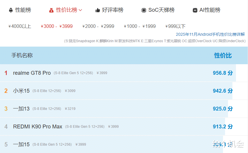 这款手机搭载第五代骁龙8至尊版处理器,是首批骁龙8E5手机,性能方面有D2独显芯片、LPDDR5X+UFS4.1存储规格、全新狂暴引擎、6700mm²循环冷泵,性能释放也不错,目前安兔兔性能榜单中排名第十,降价后也有一定的性价比,在三千元档手机中性价比排名第四,总体来说表现还是不错的,达到理想预期。