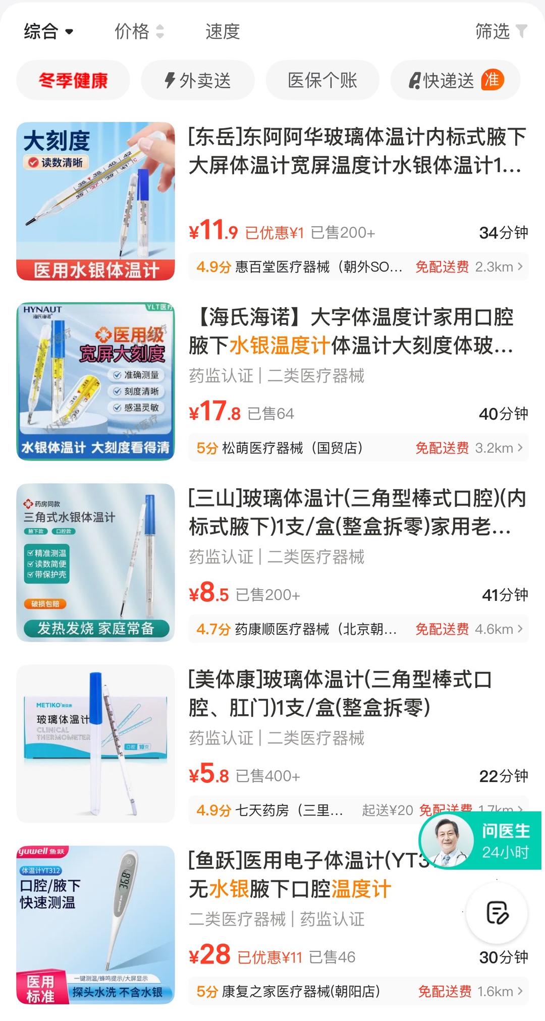 “进入冬季感冒发烧的人多一些,体温计销量本身就有所增加。”北京一家药店的工作人员表示,除了网络购买的消费者外,来到药店购买体温计的人当中,年轻人和中年人更倾向于购买电子体温计,而老年人买水银体温计的偏多,“可能还是使用习惯的问题。”
