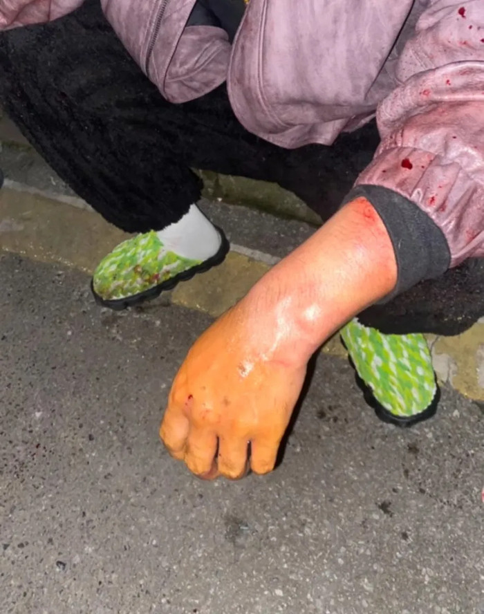 孙女士回忆,事发当天晚上10点,她带着自家拉布拉多在小区里散步,突然一只疑似德国牧羊犬的黑影朝她扑来,直接咬断了孙女士左手的手筋,右手也被咬得血肉模糊、皮肉外翻。