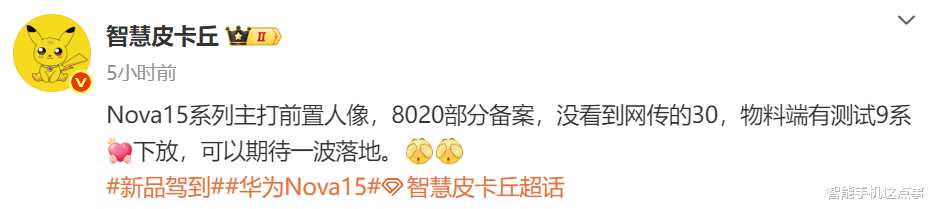 关键博主称华为Nova15系列的前置镜头会很强,Pro和Ultra版将采用双摄像头设计,专注于提升人像拍摄体验。