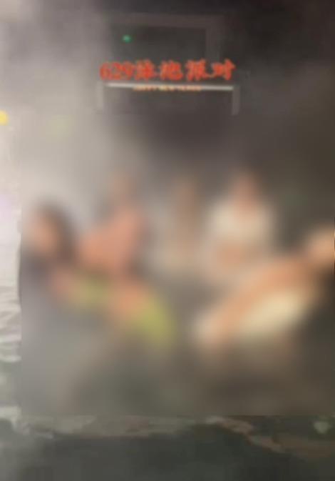 该场直播于12月上旬举行。多位网友发布的直播切片视频显示,在一个冒着热气的泳池内,聚集了多名身着泳装的男女。年轻女子在做着各种舞蹈动作,仅着泳裤的男性主持人拿着话筒和女子们近距离交流,此外还有各种水中嬉闹的画面。
