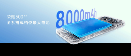 续航方面,荣耀500更是直接杀疯了!得益于青海湖电池的高能量密度,它的电池容量居然达到了8000mAh,再加上荣耀AI都江堰电池管理系统,两天一充完全不是梦,出门再也不用背充电宝了,长久用着也安全。