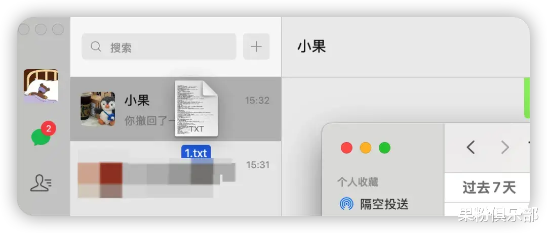 现在可直接将要发送的文件,拖至对应的好友或群聊头像上。