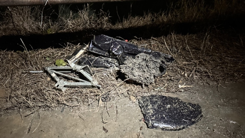 事故现场散落的车辆碎片