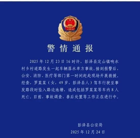 彭泽公安通报,事故造成8人死亡。