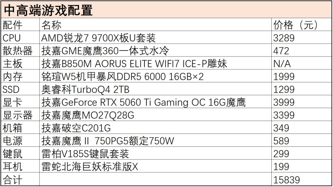 点评:这套以AMD锐龙7 9700X+NVIDIA RTX 5060 Ti为核心的中高端游戏配置,堪称1440p分辨率下的“3A游戏全能方案”。我们并没有因为追求性价比而妥协选择低价产品,而是通过核心硬件的精准搭配、外设与辅助配件的体验优化,让玩家在畅玩主流大作时无须在性能、画质与流畅度间做取舍。