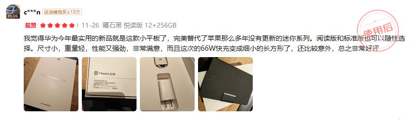 在浏览用户评价时,一个有趣的现象是“实用”二字的出现频率极高。有用户直言:“我觉得华为今年最实用的新品就是这款小平板了,尺寸小,重量轻,性能又强劲,非常满意。” 这条评论精准道出了小尺寸平板用户的痛点:市场长期缺乏兼顾高性能与极致便携的优质产品。
