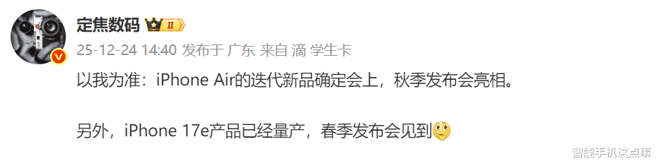 这场产品升级中的两个关键角色备受关注,一个是试图从花瓶转型为水桶机的iPhone Air2,一个是继续主打性价比路线的iPhone17e。