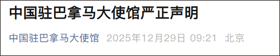 微信公众号“中国驻巴拿马大使馆”12月29日消息,针对巴拿马阿赖汉市政府在未作任何事前通知、且未与华人社团进行沟通的情况下拆除象征中巴人民友谊的中巴公园及华人抵巴150周年纪念碑一事,中国驻巴拿马大使馆发表严正声明。全文如下: