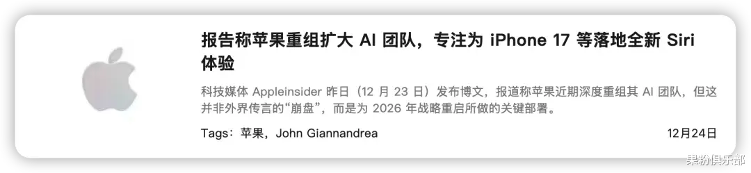 据外媒Appleinsider 报道,近期苹果对 AI 团队进行了深度重组。