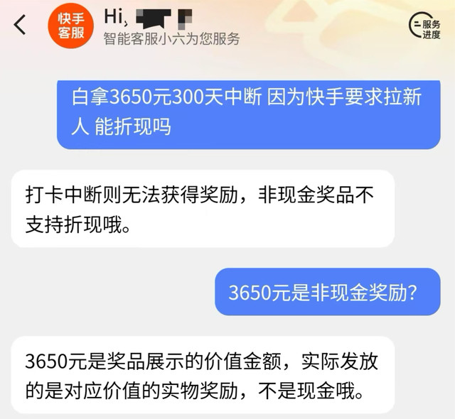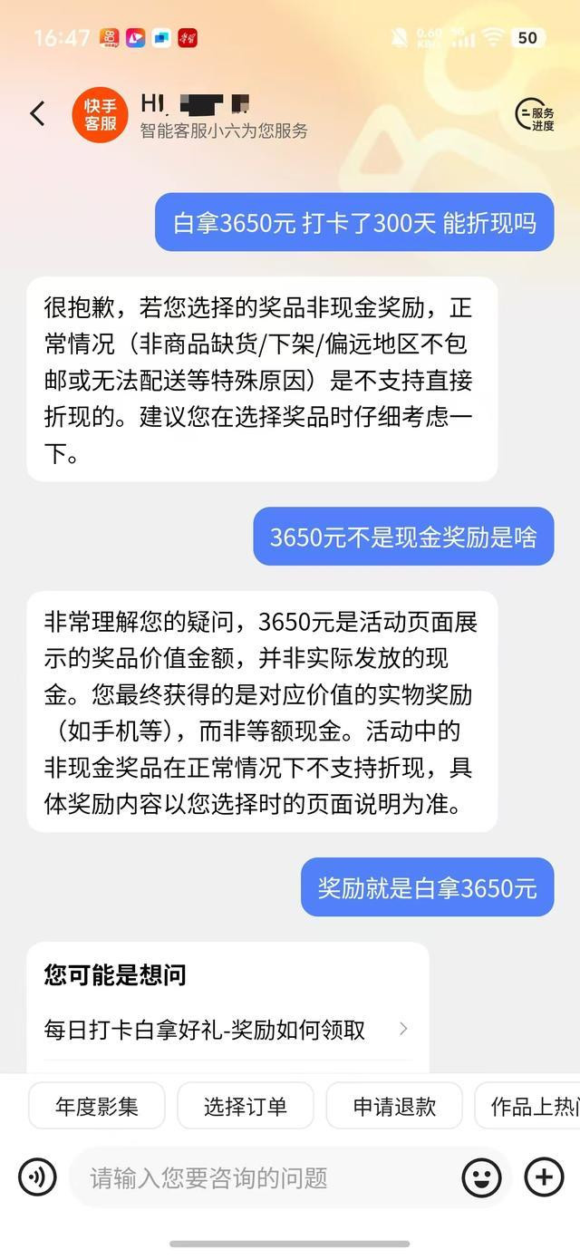 男子认为自己付出心血与时间,遇到平台套路,要求快手折现补偿。12月30日,快手回复称,非现金奖励不可折现,“3650元是奖品价值,不是现金。”