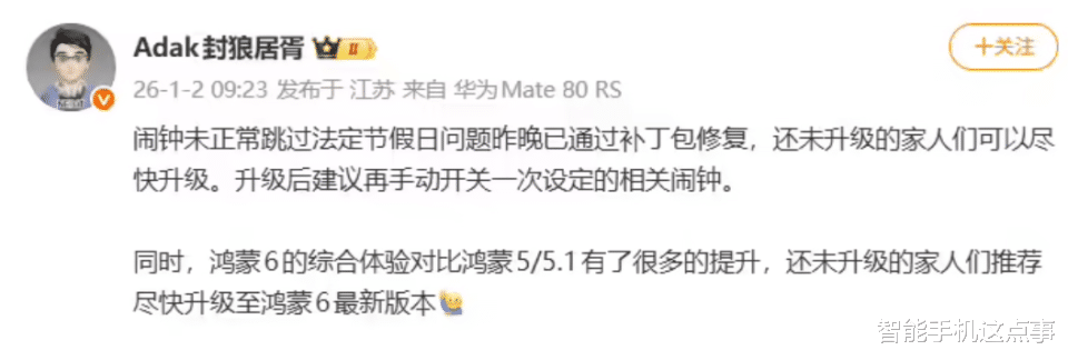 相信有很多用户还在享受元旦假期,但某些花粉却因为鸿蒙系统的一些小Bug,导致被一阵不该响起的手机闹钟粗暴地打断了。