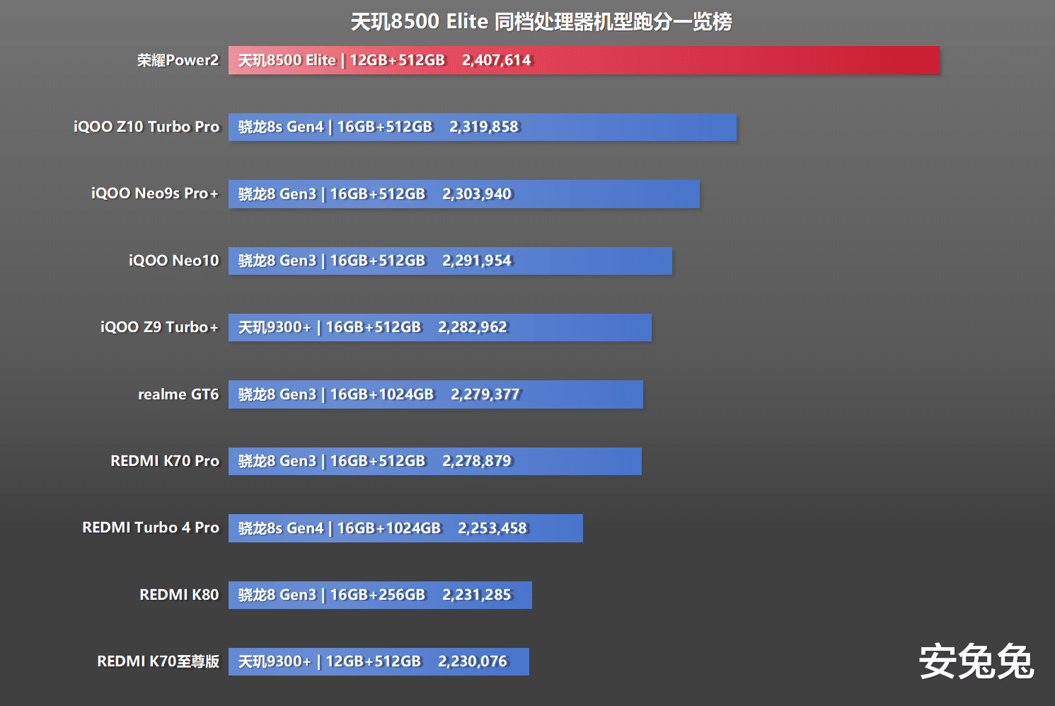 从实测来看,荣耀Power2的跑分成绩,优于同档搭载骁龙8 Gen3和骁龙8s Gen4的机型,稳居第一。
