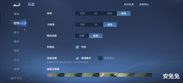 在《王者荣耀》测试中,我们将画质选项调整为“高清”,帧率调整为“极高”,进行1小时5V5对战测试。