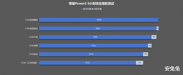 最终,荣耀Power2在6小时综合续航测试结束后,剩余电量为81%。