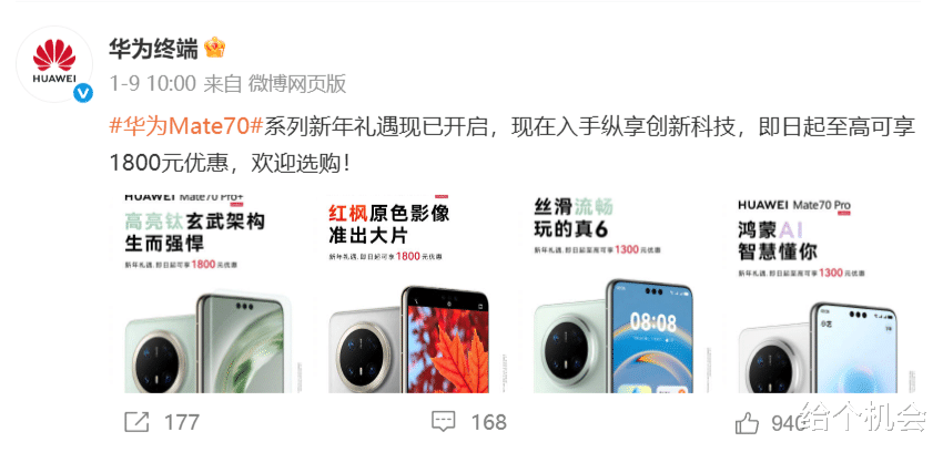 只不过华为mate 80系列的产品还是满足不了消费者,很多朋友想抢pro max版本到现在都没抢到,为了缓解这种压力,华为对mate 70系列进行大幅优惠降价,急需换华为旗舰手机的朋友也可以看看老款。