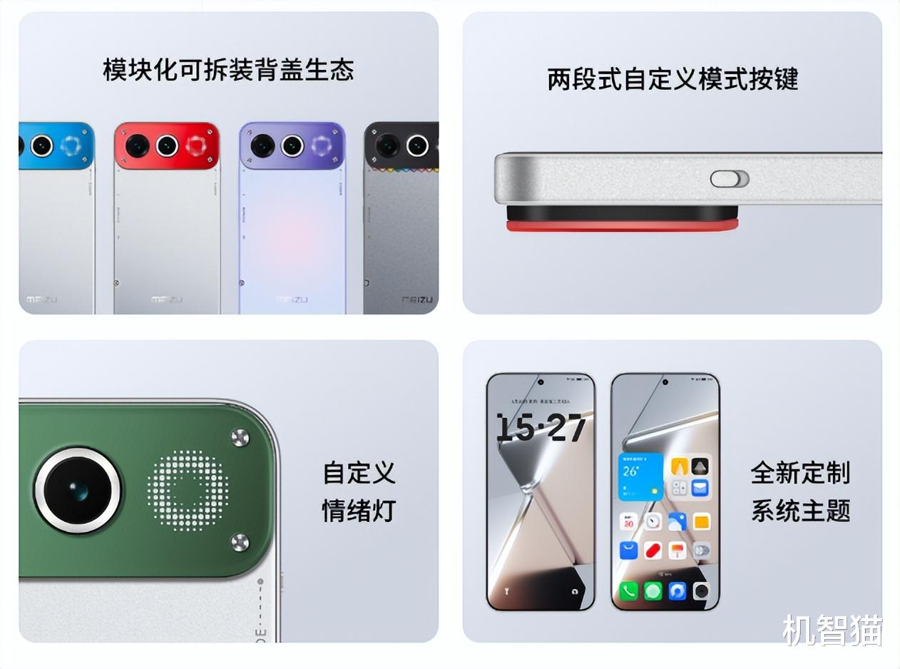 根据官方公布的信息,魅族22 Air是一款充满DIY特色的手机。它采用模块化可拆装背盖生态,用户可以通过更换背盖和原生磁吸后盖实现真正意义上的个性化“痛机”效果。另外,它还能外接电池模块,手柄,以及可望远的相机模块。