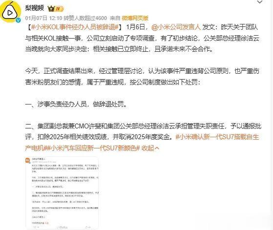 2026年1月初,小米因商业投放争议博主“万能的大熊”,引发核心米粉强烈反弹。