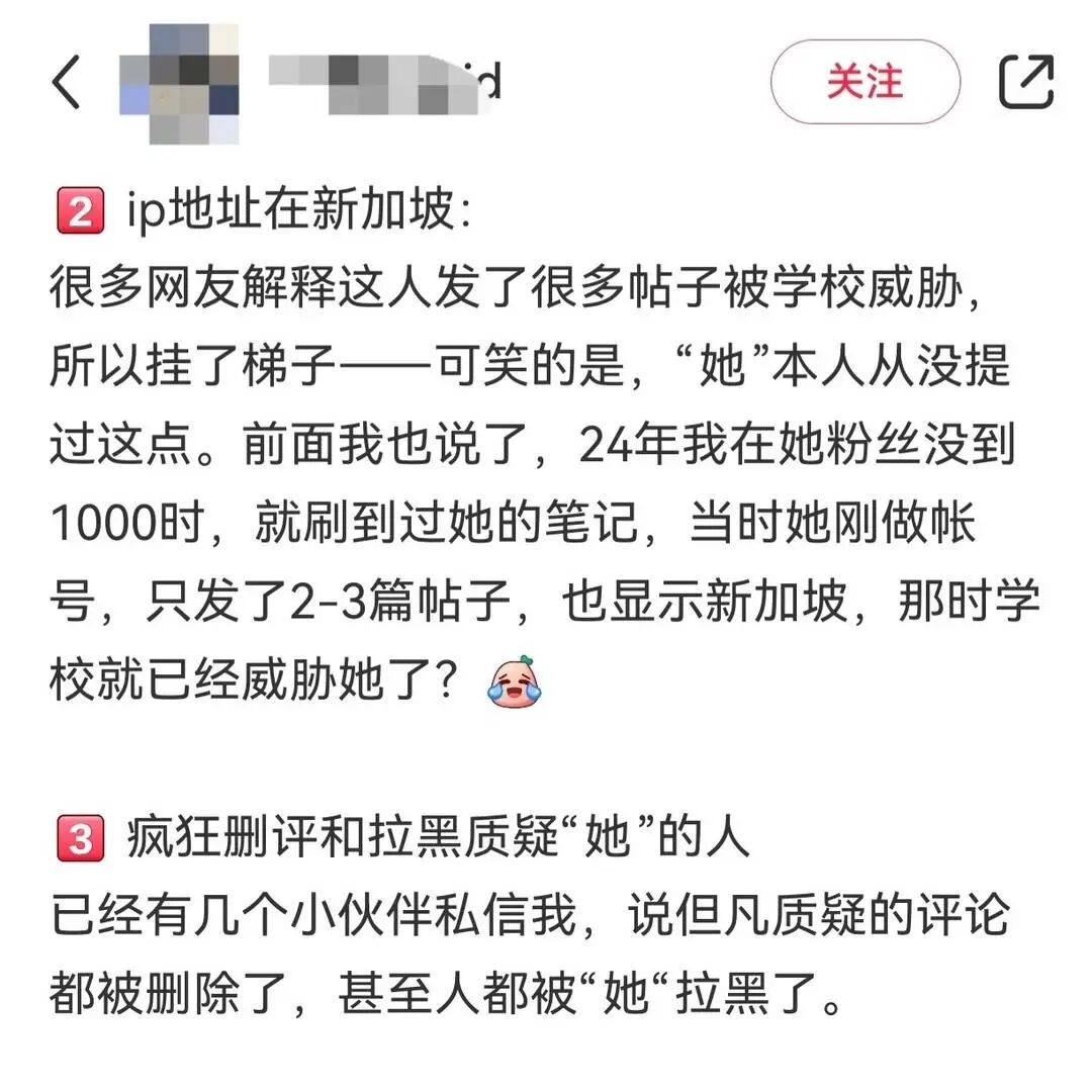 一位网友表示,他2024年开始关注到该发帖账号,当时ip地址就在新加坡,只发了2到3篇帖子,并且从来没具体写过是哪个高校。此外,但凡质疑的评论都被删除了,甚至人都被拉黑。该网友还称,多名网友也曾到多所高校进行核实,都没能找到这位“副教授”或是“女保安”。