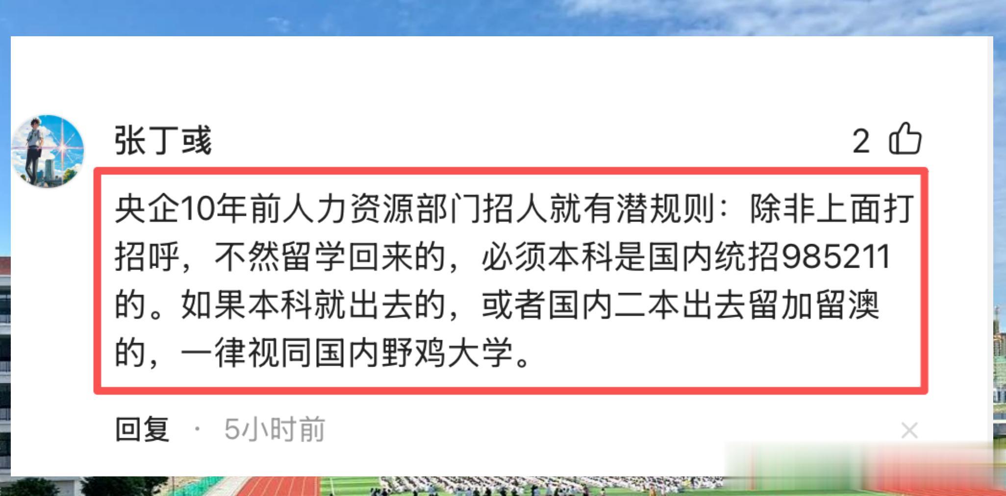 这就是现实。本科看底子,硕士看牌子。 如果你在国内连高中都考不上,家里花点钱把你送去国外“水”个文凭,回来想进大厂?HR没空陪你玩“开盲盒”,直接一刀切最省事。