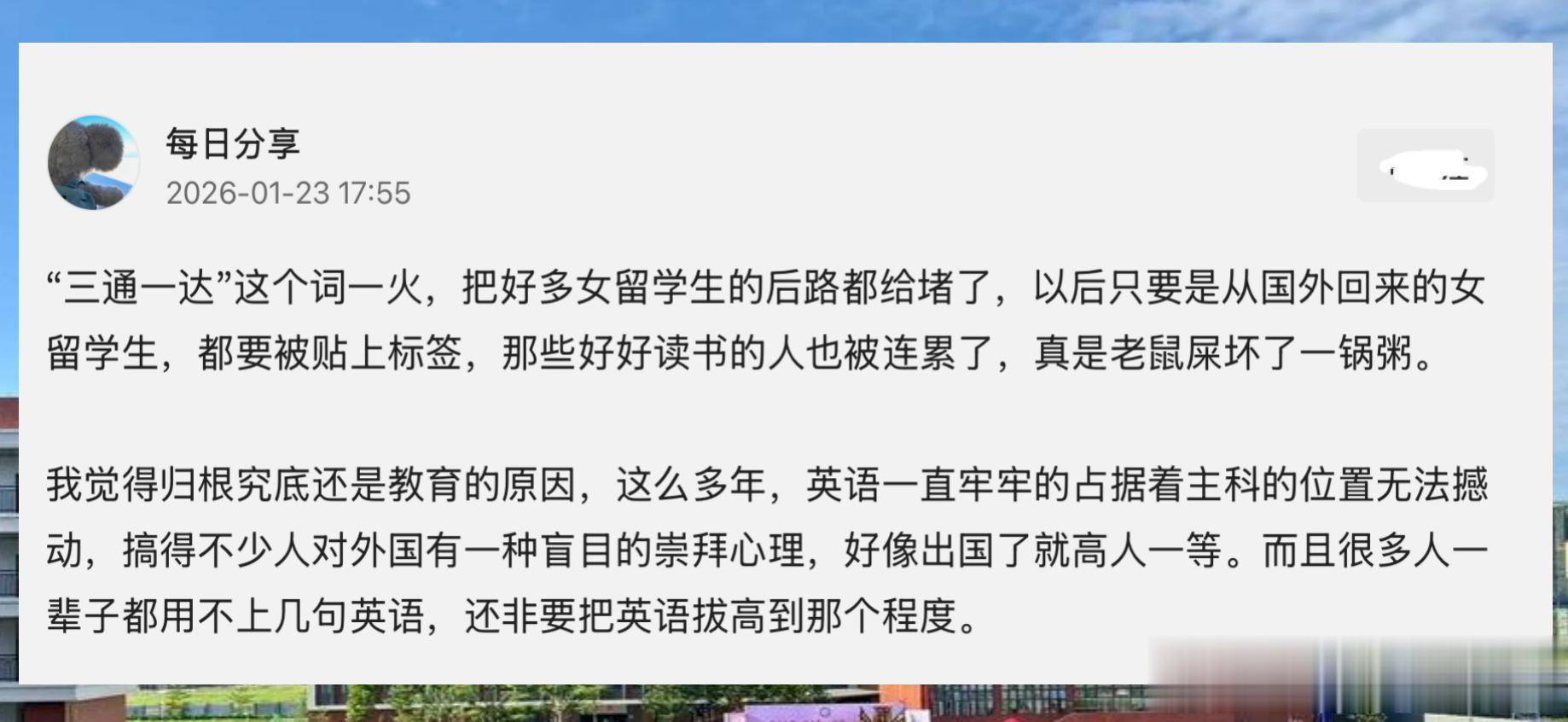 (本文整理自网友@今日分享的短图文及真实评论区,旨在呈现当下社会对留学话题的多元观点,部分个案不代表全体留学生群体,请理性看待。)