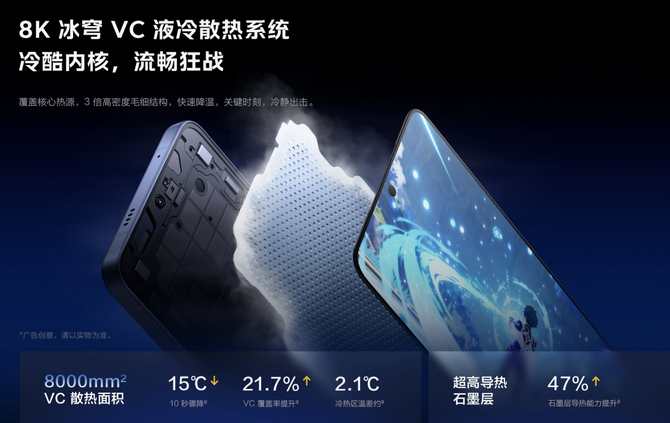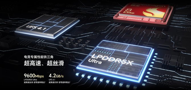 性能上,搭载骁龙8至尊版芯片,Monster超核引擎、自研电竞芯片Q2,配合8000mm²超大VC散热板,形成“冰穹VC散热系统”,哪怕边充边玩这种极端场景,也能有效控制机身温度,避免因过热导致的降频掉帧,保障游戏全程流畅。