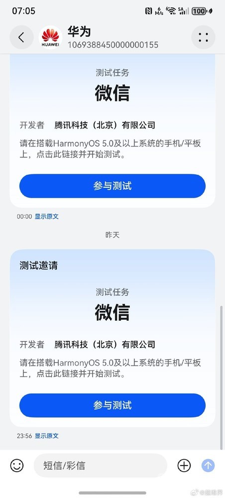 [CNMO科技消息]近日,华为鸿蒙原生版微信迎来了新一轮的邀请测试,标志着这款国民级应用在鸿蒙生态内的持续优化与功能完善。据CNMO了解,此次测试旨在修复已知问题,为后续更大范围的版本推送做准备。