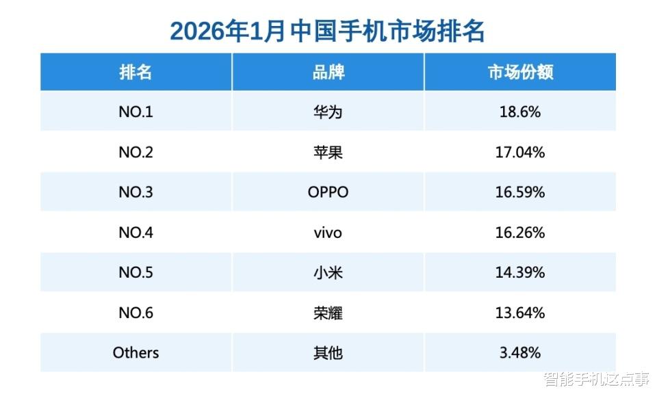 一个多月前很多网友还在争论2026年的中国手机市场会以怎样的格局开启,今天数据给了我们一个清晰、甚至有些令人惊讶的答案。