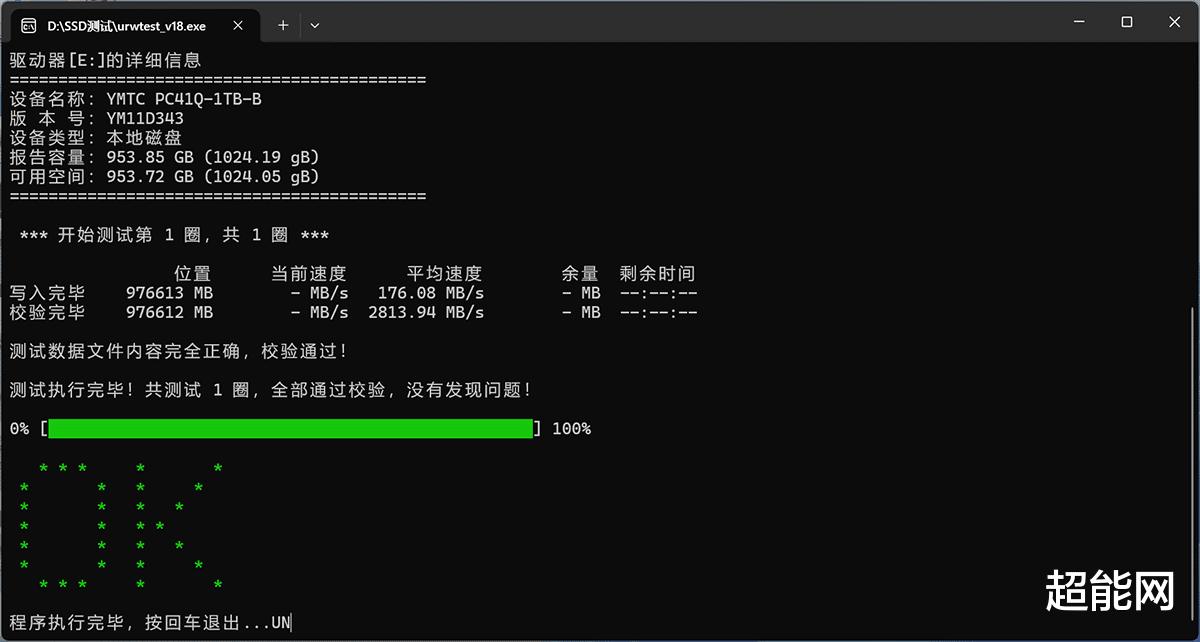 在放入恒温箱之前,我们使用urwtest软件把SSD写满了校验文件,此时PC41Q的平均校验速度是2813.964MB/s。