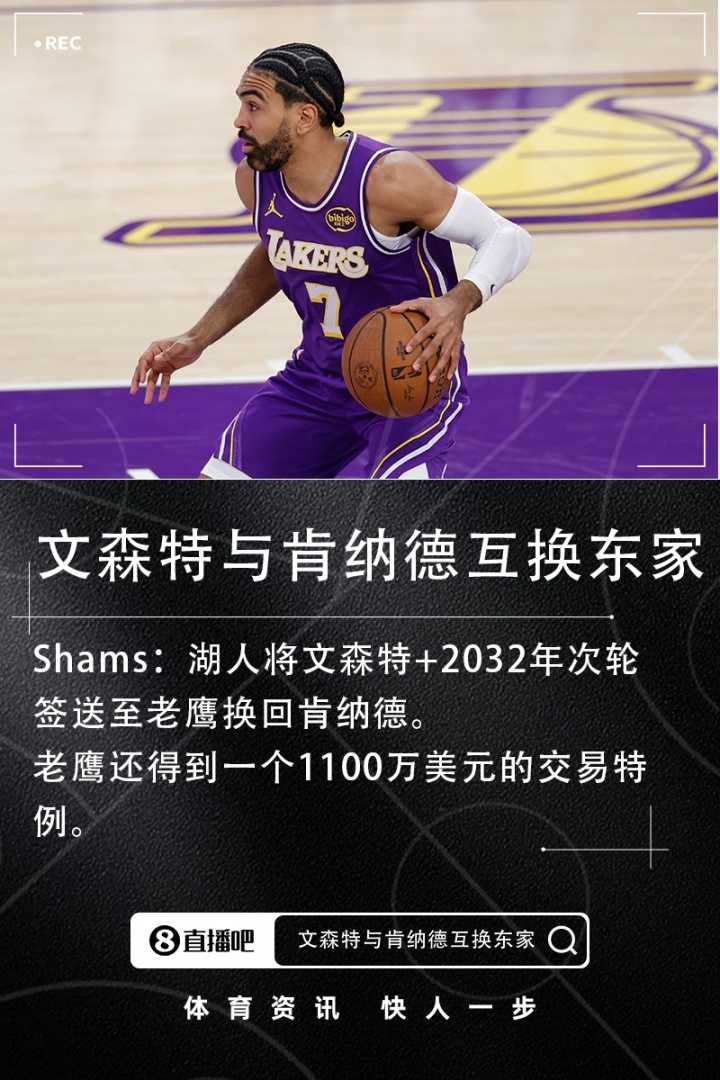 Shams:湖人将文森特+2032年次轮送至老鹰换回肯纳德