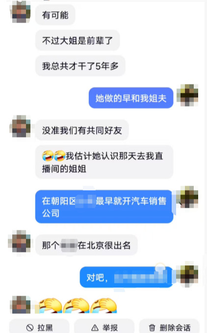 方先生称,2023年他偶然刷到该女主播的视频,持续关注的核心原因在于,直播间互动中他得知,她也曾有在北京汽车销售经历,两人有共同话题,他觉得遇到了红颜知己。