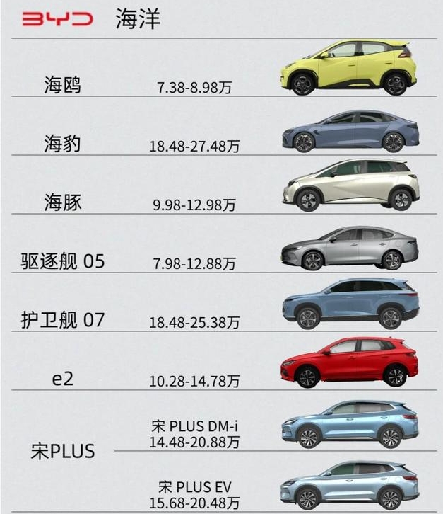 仰望:U8/U9,仰望系列是比亚迪超豪华品牌,首款车型由U8打开越野车型市场,售价109.8万,更是豪华越野的标杆。后面推出U9,高性能超跑售价超百万元。