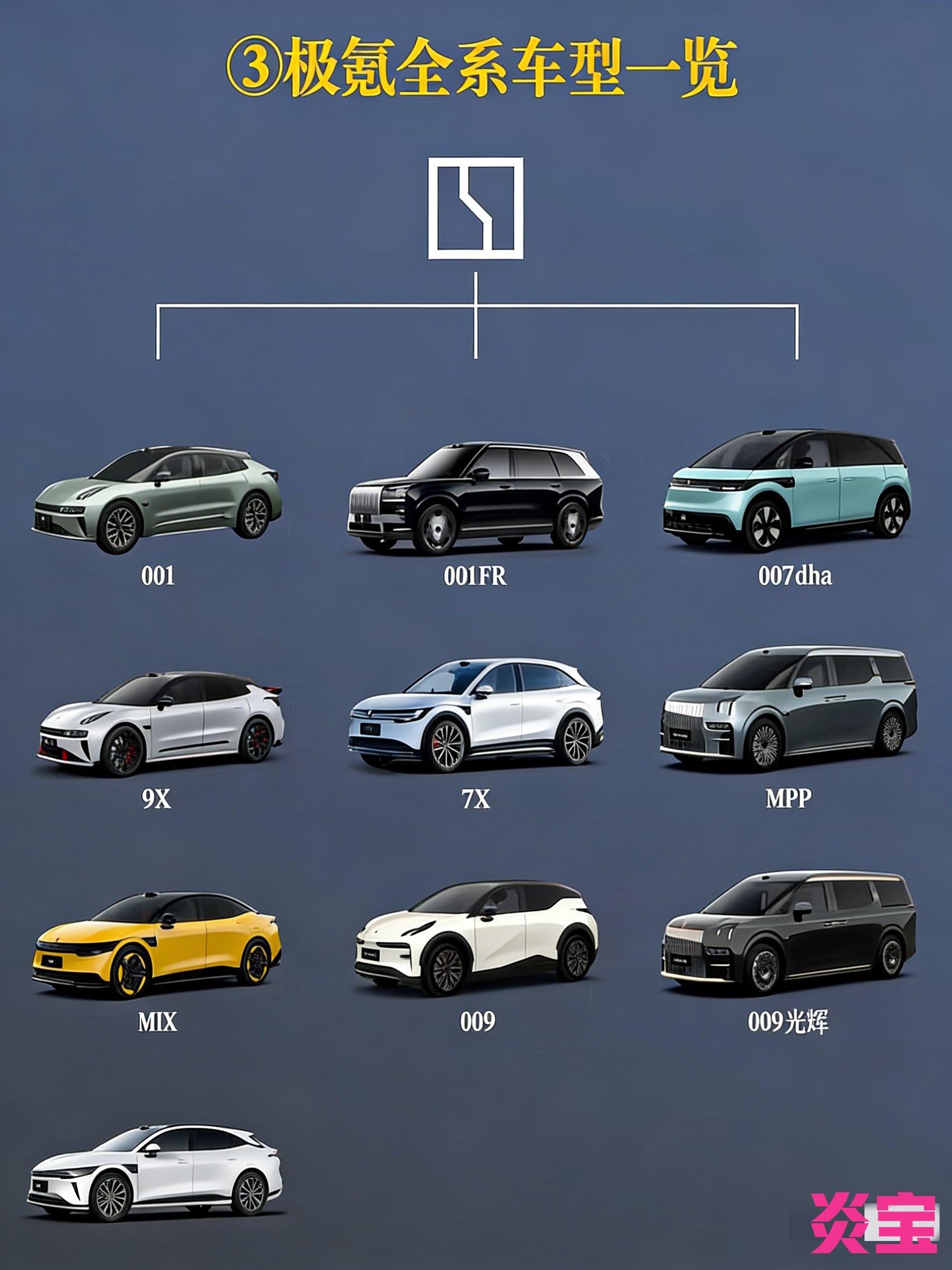 定位高端新能源品牌,尤其001轿跑、009MPV等代表车型。主打纯电+极致性能+豪华智能。