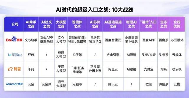 最终,可能不是某一个AI App“一统天下”,而是“万物皆Agent”,无论是社交软件、电商平台,还是办公套件,都深度整合了AI Agent(智能体)的能力。入口不再是一个需要被记住的位置,而是一种随时被调用的能力。到那时,大厂之间的竞争将集中在三个维度。
