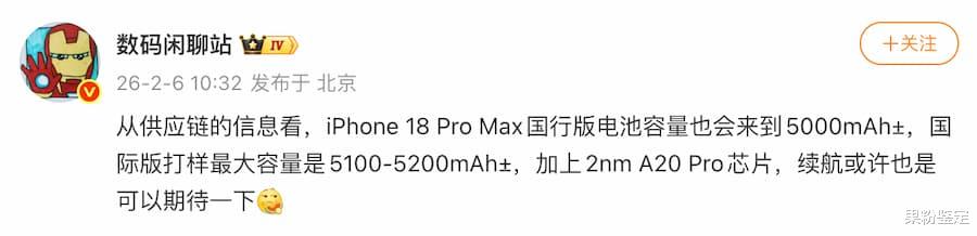 就普通用户来说,不少人在选购手机时,对于电池续航也算是的购机考量之一,从目前已知资讯来看,苹果有意通过硬件与芯片双管齐下,强化 iPhone 18 Pro Max 的整体续航表现。
