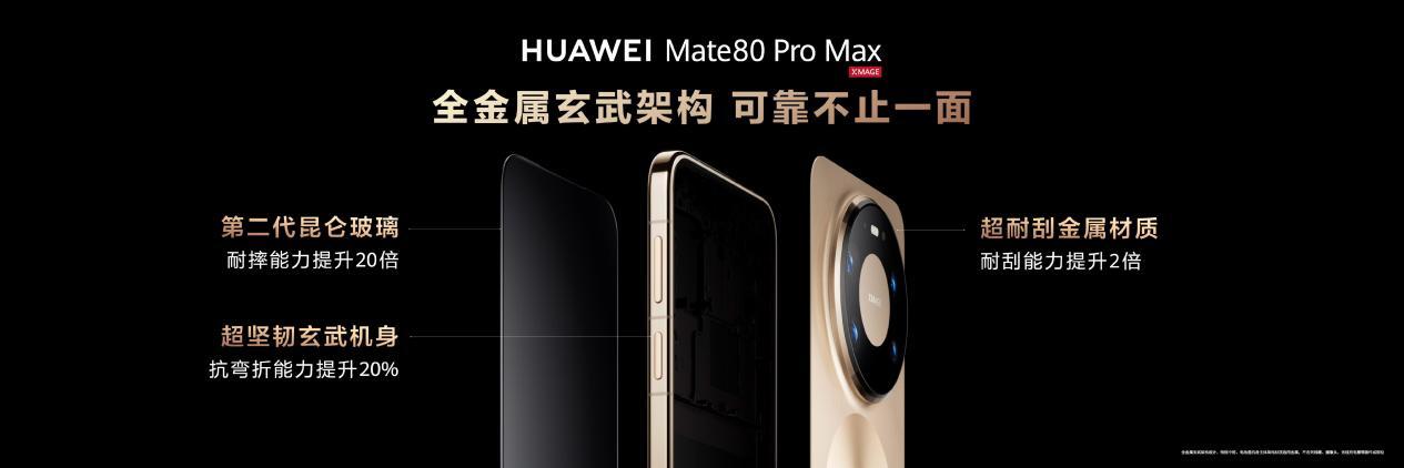 不仅如此,华为Mate80系列还有全金属玄武架构的加持,航空级铝合金一体成型,中框与后盖衔接严丝合缝,抗弯折能力较上一代提升20%,保证了机身耐用性。正面这块屏幕采用第二代昆仑玻璃,就算是钥匙、硬币摩擦也不易留痕,日常磕碰无需过度担忧。