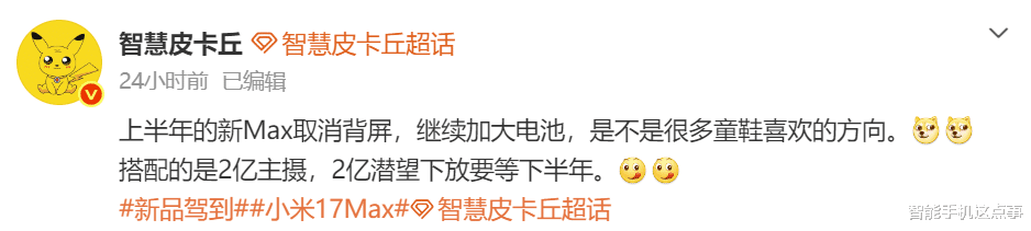 比如即将在今年上半年登场的小米17 Max,将果断砍掉这块标志性的背屏设计,而省下来的内部空间和成本,被投入到了更普世的需求上。