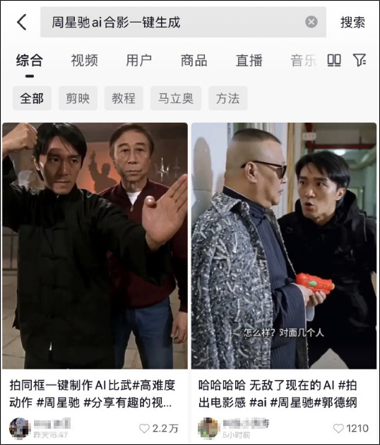 近日,某短视频平台上AI生成周星驰经典电影片段的视频被大量网友制作发布。